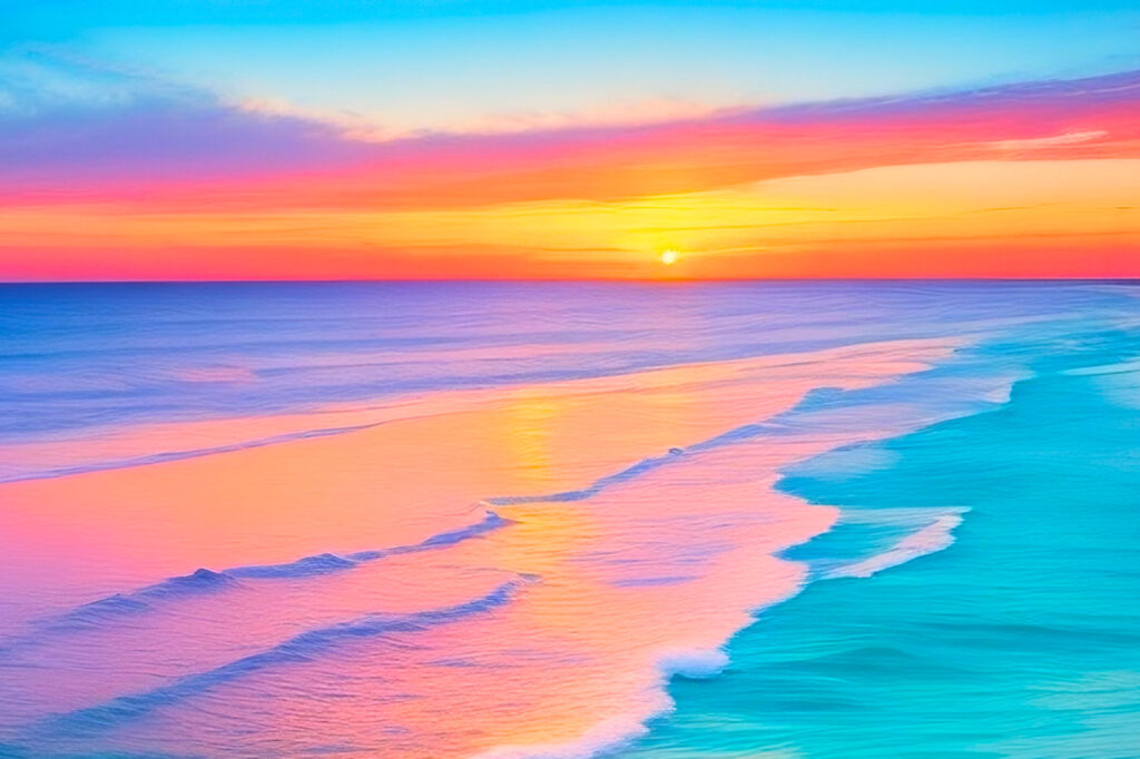 Imagine the bliss of walking along a blond, tropical beach before floating in the glimmering, clear turquoise water under a sky filled with bright sunshine; or the wonderment of finding your grandmother’s hand-stitched quilt, crafted from bright squares of patterned aquamarine, Kelly green, and coral, all bound together with butter toffee ribbon; or the excitement of what’s to come when happening upon a robins’ nest of tiny blue-green eggs nestled snugly in the hollow of a mossy tree trunk that draws your eye down to a bed of Golden Parade tulips.